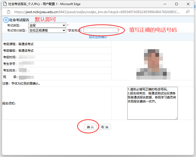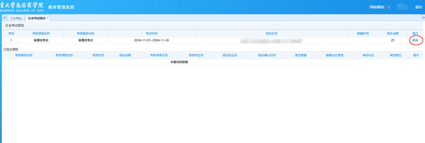 点击“社会考试报名”进行报名,务必填写正确的电话号码。
